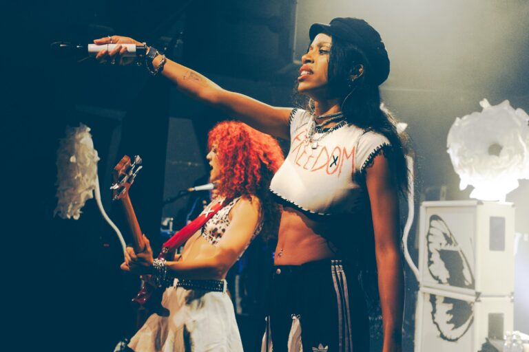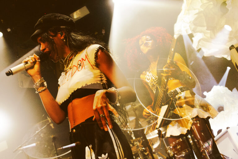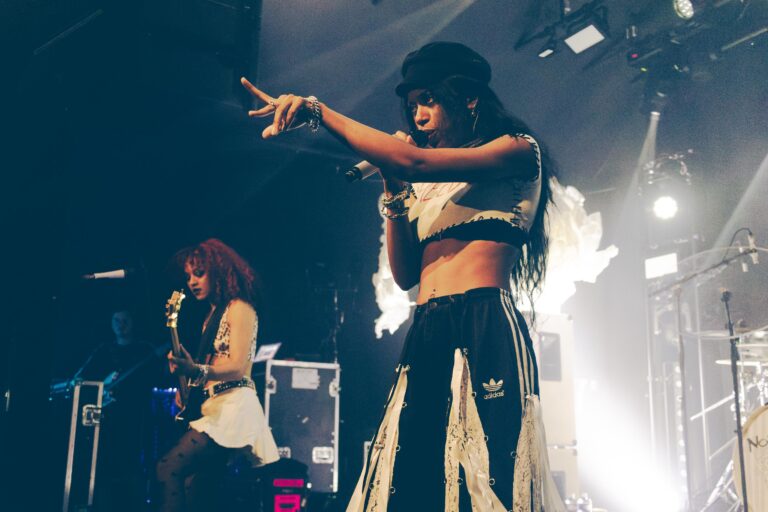Le Rex était en feu ce lundi 06 octobre pour le concert de Nova Twins. Entre punk rock, grime et métal, le duo londonien a déversé un torrent d’énergie dès les premières notes.