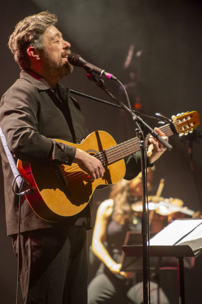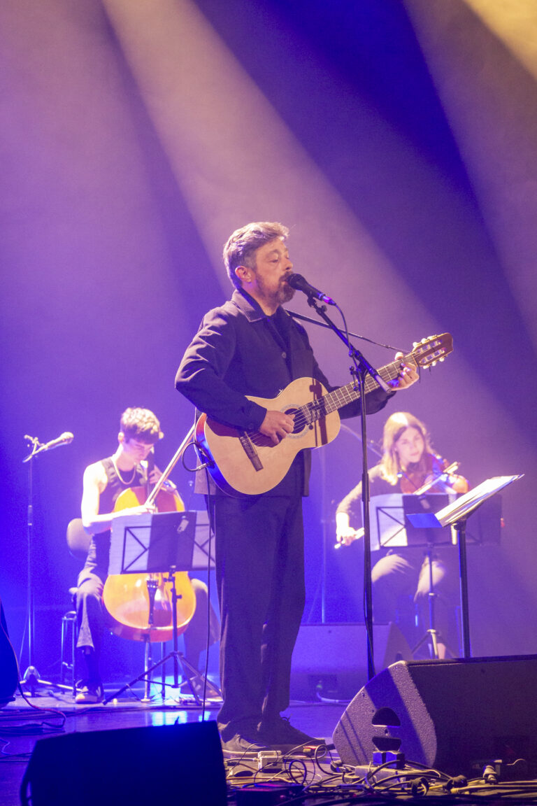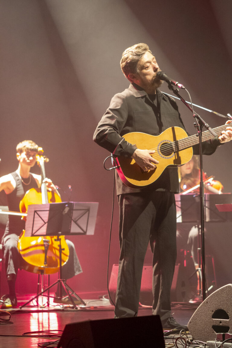 Un set entrecoupé d’interviews de l’auteur, qui commente sa poésie et sa façon d’écrire, dans un verbe calme et grave. La voix de Renaud est portée par les choeurs et les cordes du quatuor, et les batteries, lapsteel, guitares, basses… d’Antoine. c’est beau, sensible et intemporel, 3 rappels et standing ovations témoignent de l’intensité de la prestation. Hier soir, c’était un moment hors du temps au Metronum